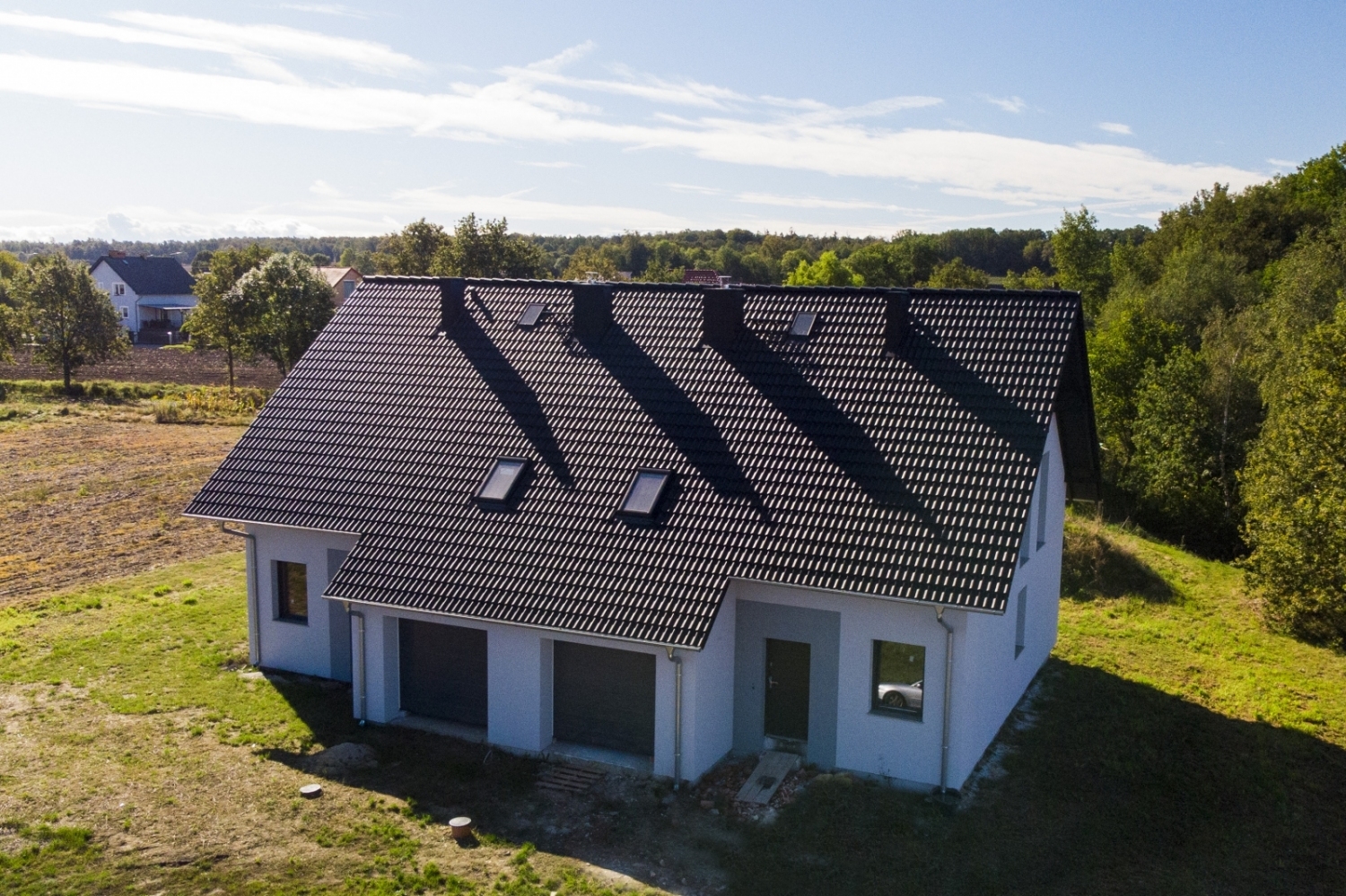 Biuro Nieruchomości OptiChata prezentuje ofertę sprzedaży nowego domu jednorodzinnego w zabudowie bliźniaczej w stanie deweloperskim, w spokojnej i malowniczej wsi położonej 10 km od Bolesławca - w Warcie Bolesławieckiej.